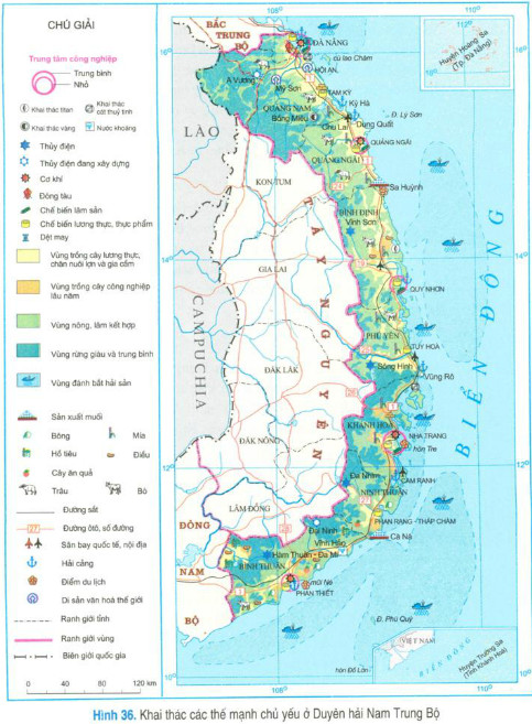 Dựa vào hình 36 (hoặc Atlat Địa lí Việt Nam), hãy phân tích các nguồn tài nguyên để phát triển công nghiệp, hiện trạng phát triển và phân bố công nghiệp trong vùng.