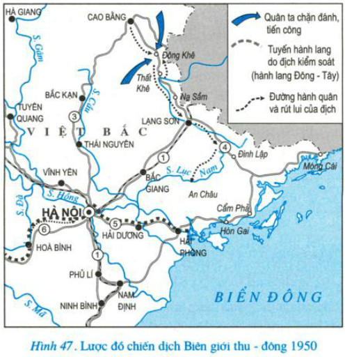 Dựa vào lược đồ (Hình 47), trình bày diễn biến chiến dịch Biên giới thu – đông 1950.