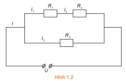 Cho đoạn mạch như Hình 1.2. Gọi I là cường độ dòng điện của mạch chính,I1, I2 và I3 là cường độ dòng điện mạch rẽ