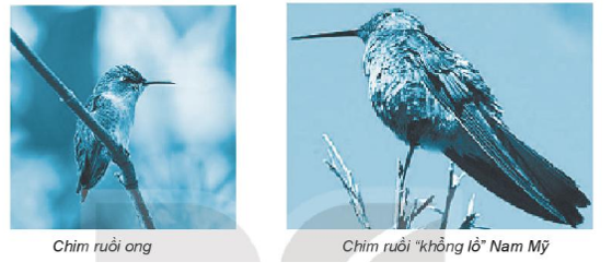 Chim ruồi “khổng lồ” Nam Mỹ (Giant hummingbird of South America) là loại chim ruồi to nhất trên thế giới. Nó dài gấp \(4\dfrac{1}{8}\) lần chim ruồi ong (bee humminbird).