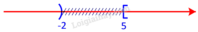 Vậy phần không bị gạch trên trục số là  \(\left( { – \infty ; – 2} \right) \cup [5; + \infty )\)