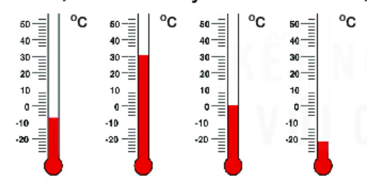 Lần lượt từ trái sang phải là : \( – {8^o}C{,30^o}C{,0^o}C, – {21^o}C\)