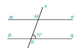 Suy ra \(\widehat {mHK} = \widehat {HKq} = {70^o}\)(hai góc so le trong) và \(\widehat {vHn} = \widehat {HKq} = {70^o}\)(hai góc đồng vị)