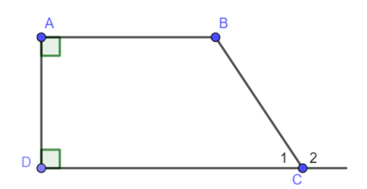 Vì  \(AD \bot AB,AD \bot CD\) nên \(\widehat A = \widehat D = {90^o}\)