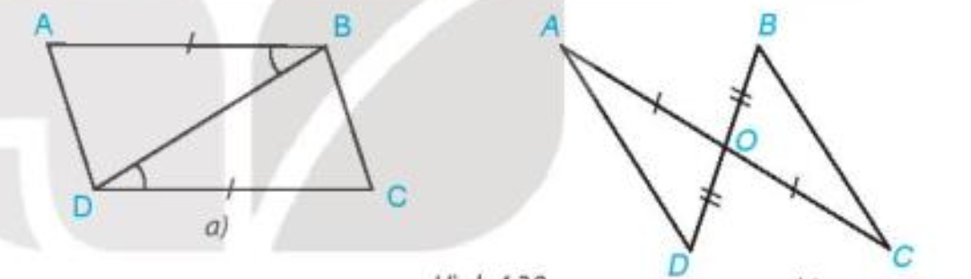 + \(\Delta ABD = \Delta CDB\left( {c.g.c} \right)\) vì AB  = CD, \(\widehat {ABD} = \widehat {BDC}\) (giả thiết), BD là cạnh chung.