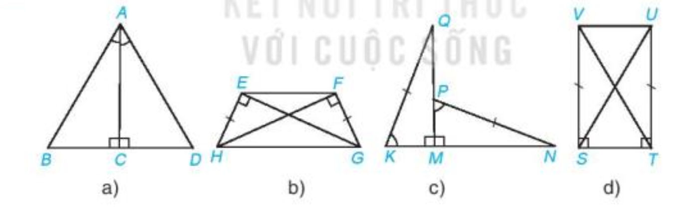 d) \(\Delta SVT = \Delta TUS\)(hai cặp cạnh góc vuông) vì hai tam giác lần lượt vuông tại đỉnh S và T, SV = TU, ST là cạnh chung.
