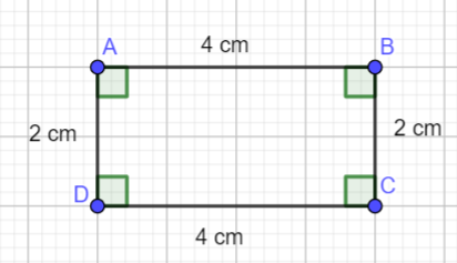 b) vẽ hình chữ nhật có chiều dài 4cm, chiều rộng 2cm.