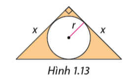 Diện tích phần được tô màu: \(S = \frac{1}{2}x.x – 4.3,14.{r^2}\)