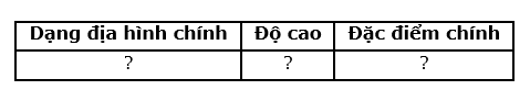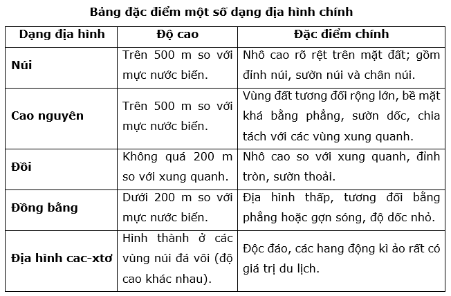 Hãy lập bảng để phân biệt các dạng địa hình chính trên Trái Đất theo mẫu sau: