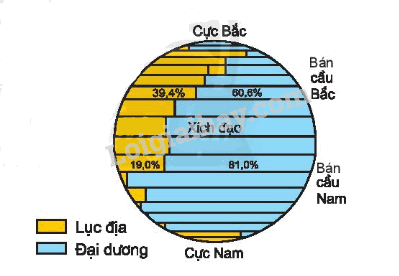 Tỉ lệ diện tích lục địa và đại dương ở bán cầu Bắc và bán cầu Nam