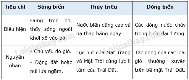 Em hãy phân biệt 3 dạng vận động của nước biển và đại dương: sóng, thủy triều và dòng biển.