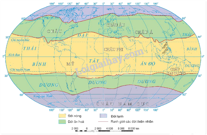 Hình 2. Các đới thiên nhiên trên Trái Đất