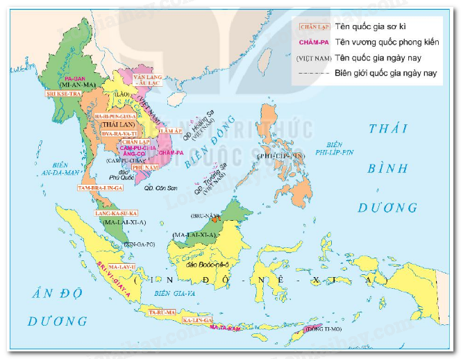 Ở Đông Nam Á, trong khoảng thời gian từ thế kỉ VỊI đến thế kỉ X đã hình thành một số quốc gia phong kiến. Quan sát hình 1 (trang 52, SGK), em hãy hoàn thiện bảng sau.