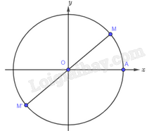 Do \(M’\) đối xứng với \(M\) qua \(O\), ta suy ra \(\left( {OM,OM’} \right) = {180^o}\)