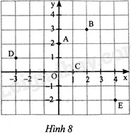 Tìm tọa độ của các điểm A, B, C, D, E trong Hình 8.