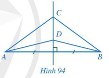 Trong Hình 94, đường thẳng CD là đường trung trực của đoạn thẳng AB. Chứng minh