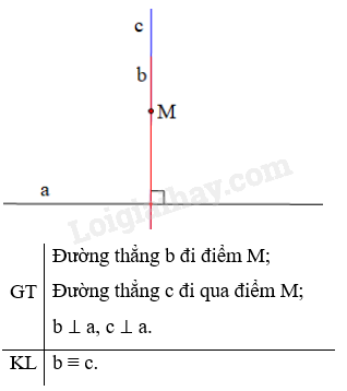 c) Nếu hai đường thẳng cùng đi qua một điểm và cùng vuông góc với một đường thẳng khác thì hai đường thẳng đó trùng nhau.