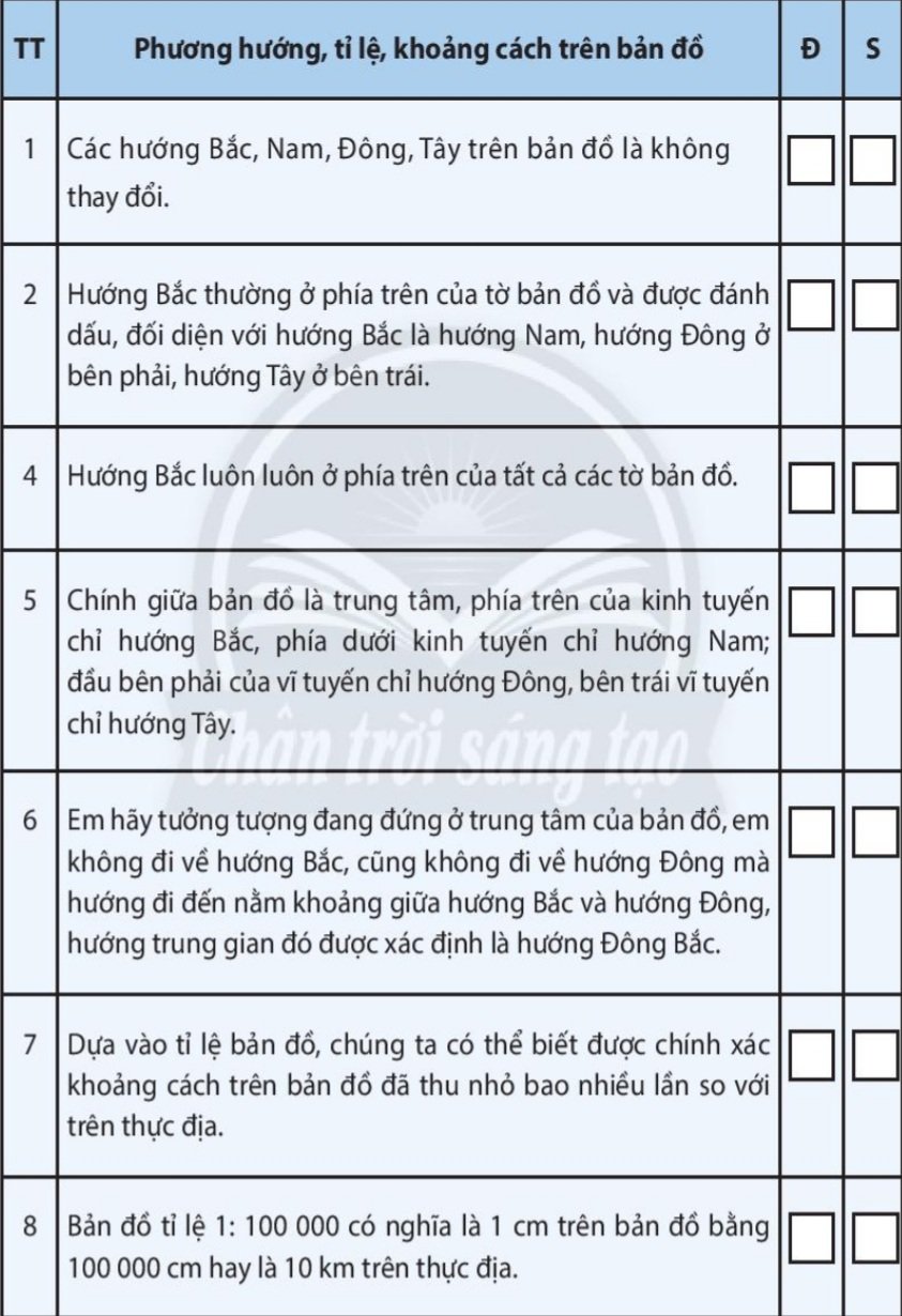 Những ý sau đây đúng (Đ) hay sai (S)? Đánh dấu X vào các ô tương ứng bên cạnh mỗi ý.