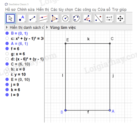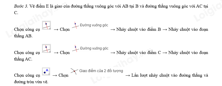 để nối B với E, C với E, C với A và thu được hình chữ nhật ABEC.
