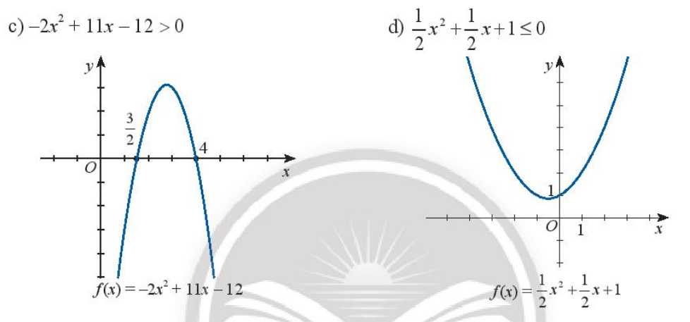 Dựa vào đồ thị của hàm số bậc hai tương ứng, hãy xác định tập nghiệm của các bất phương trình bậc hai sau đây: