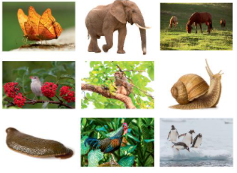 a, Các sinh vật trong hình là: con bướm, con voi, con ngựa, con chim sâu. con khỉ, con ốc sên, con đỉa, con gà, con chim cánh cụt