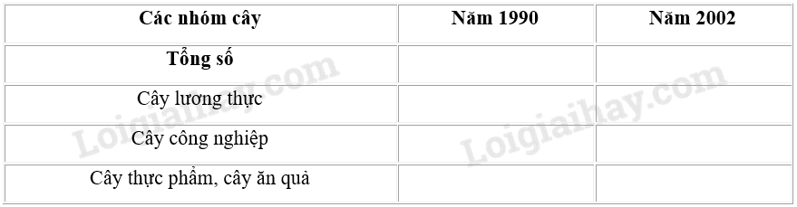 Tỉ lệ gieo trồng các nhóm cây năm 1990 và năm 2002