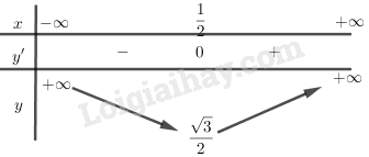 \(y’ = {{2{\rm{x}} – 1} \over {2\sqrt {{x^2} – x + 1} }};y’ = 0 \Leftrightarrow x = {1 \over 2}\Rightarrow {y = {{\sqrt 3 } \over 2}}\)