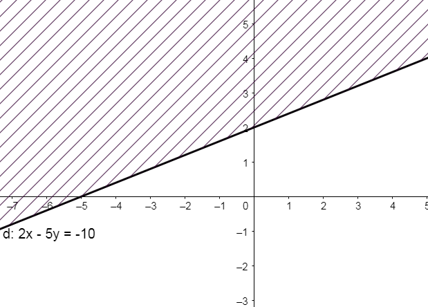 Cho bất phương trình bậc nhất hai ẩn: \(2x – 5y + 10 > 0\)