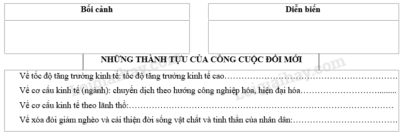 Dựa vào nội dung SGK Địa lí 12 và hiểu biết của bản thân, hãy điền tiếp nội dung phù hợp để nêu rõ bối cảnh và quá trình đổi mới ở Việt Nam: