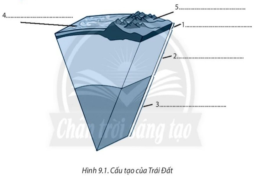 Điền những thông tin tương ứng với cấu tạo Trái Đất được thể hiện trong hình 9.1: