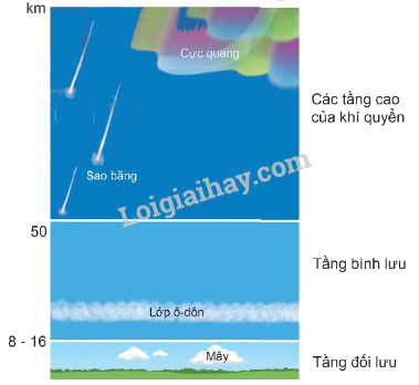b) A. đối lưu, bình lưu, các tầng cao của khí quyển.
