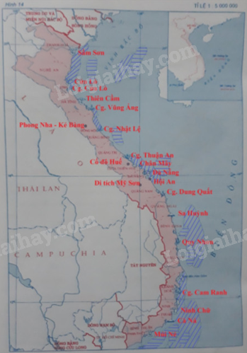 – Điền tên các bãi biển có giá trị du lịch nổi tiếng, các điểm tham quan du lịch ở Bắc Trung Bộ và Duyên Hải Nam Trung Bộ.