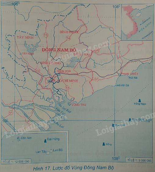 – Điền tên sông Đồng Nai, sông Bé, hồ Dầu Tiếng, hồ Trị An vào chỗ chấm (…) trên lược đồ.