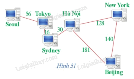 Hình 31 biểu diễn mạng lưới máy chủ và tốc độ truyền dữ liệu (đơn vị: Megabit/ giây, kí hiệu là Mbps) giữa một số thành phố. Vẽ một đồ thị sử dụng điểm, đường để biểu diễn mạng lưới đó.