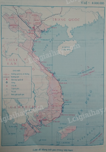 Điền vào lược đồ Giao thông tên của một vài tuyến quốc lộ, sân bay quốc tế và cảng sau đây:
