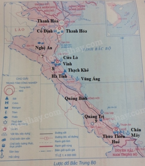 – Tên các tỉnh: Thanh Hóa Nghệ An, Hà Tĩnh, Quảng Bình, Quảng Trị, Thừa Thiên Huế.