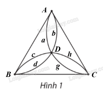 Các cạnh của đồ thị ở Hình 1 là: AB, BC, CA, a, b, c, d, g, h. Do đó đồ thị có 9 cạnh.