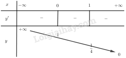 \(y’ = {\left( {\dfrac{1}{4}} \right)^x}.\ln \left( {\dfrac{1}{4}} \right) \)\(=  – {\left( {\dfrac{1}{4}} \right)^x}\ln 4 < 0\,\,\forall x \in R\)