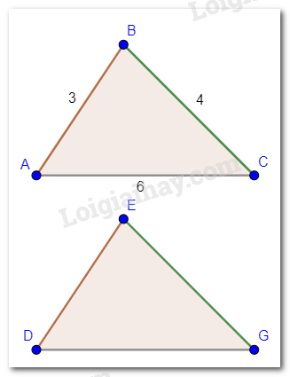 Cho biết \(\Delta ABC = \Delta DEG\),\(AB = 3\)cm,\(BC = 4\)cm,\(CA = 6\)cm. Tìm độ dài các cạnh của tam giác DEG.