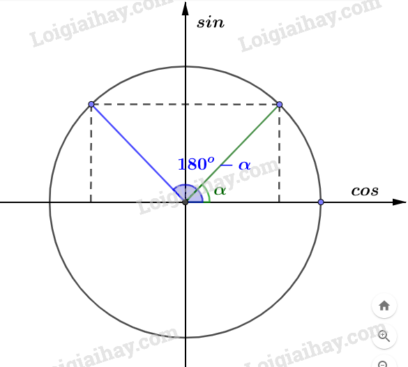 B. \(\cos \alpha  = \cos \left( {180^\circ  – \alpha } \right)\)