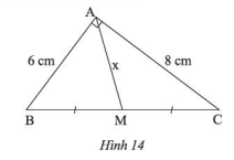 Do đó \(x = AM = \frac{1}{2}BC = \frac{1}{2}.10 = 5\) (cm)
