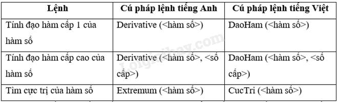 Để tính đạo hàm cấp 2 ta nhập DaoHam (, 2)