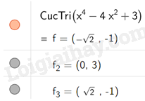 Do đó, hàm số \(y = {x^4} – 4{x^2} + 3\) có các điểm cực trị là \(\left( { – \sqrt 2 ; – 1} \right);\left( {0;3} \right);\left( {\sqrt 2 ; – 1} \right)\)