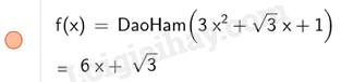 Để tính đạo hàm cấp 1 ta nhập DaoHam (\(3{x^2} + \sqrt 3 x + 1\))