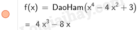 Để tính đạo hàm cấp 1 ta nhập DaoHam (\({x^4} – 4{x^2} + 3\))