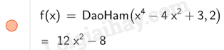 Để tính đạo hàm cấp 2 ta nhập DaoHam (\({x^4} – 4{x^2} + 3\), 2)
