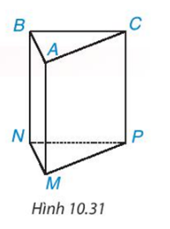 Quan sát và gọi tên các mặt đáy, mặt bên, cạnh đáy, cạnh bên của hình lăng trụ đứng tam giác ở hình 10.31.