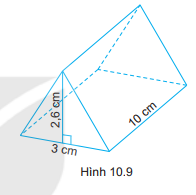 Diện tích đáy của lăng kính là: \(S = \dfrac{1}{2}.3.2,6 = 3,9\left( {c{m^2}} \right)\)