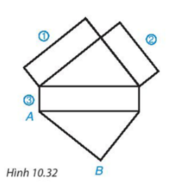 Quan sát Hình 10.32 và cho biết cạnh nào trong cách cạnh (1), (2), (3) ghép với cạnh AB để có hình lăng trụ đứng