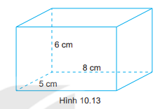 Cho hình hộp chữ nhật có kích thước như Hình 10.13. Tính thể tích, diện tích xung quanh của hình hộp chữ nhật.